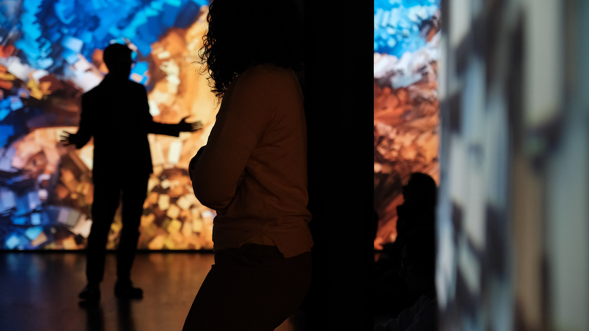 The experience serves to explore the concept of immersion, to understand the meaning of data and artificial intelligence through a guided viewing of digital artworks carefully chosen to excite, stimulate the imagination, and facilitate understanding and participation.